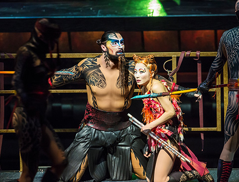 Be awed by dynamic theatrical landscape as an entire empire appears on KÁ's colossal stage with a captivating display of aerial acrobatics envelops the audience.